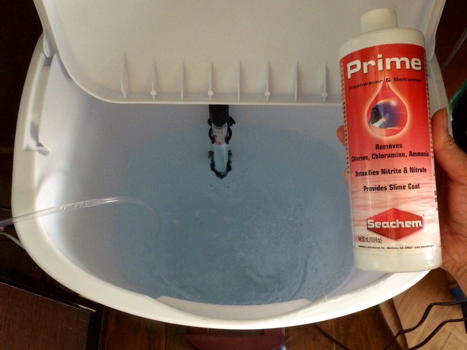 2. Put in enough Prime for 10 gal of tap water